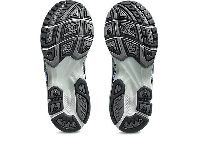 Het bovenwerk is opgebouwd uit ademend mesh in Dolphin Grey, gecombineerd met synthetische en metallic overlays in Pure Silver die het gelaagde Kayano-design krachtig naar voren brengen. De subtiele blauwe en zilveren nuances geven de sneaker een elegante, sportieve uitstraling zonder overweldigend te zijn.